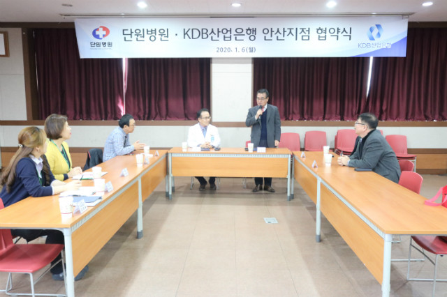 단원병원 문용식 의료원장과 KDB산업은행 안산지점 김종두 지점장이 참석한 가운데