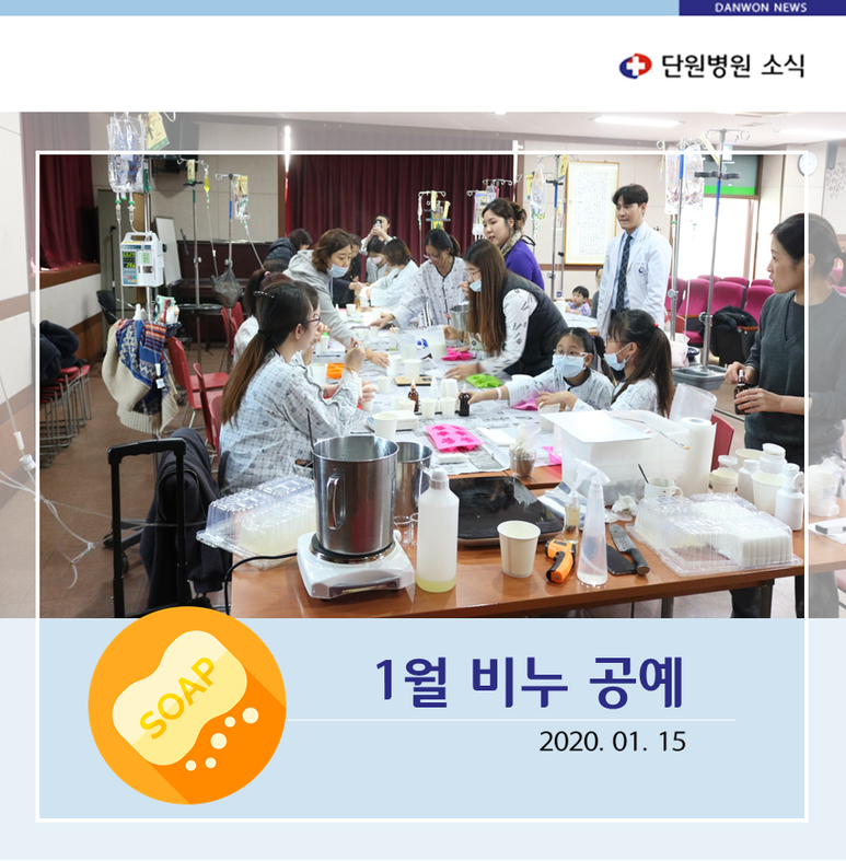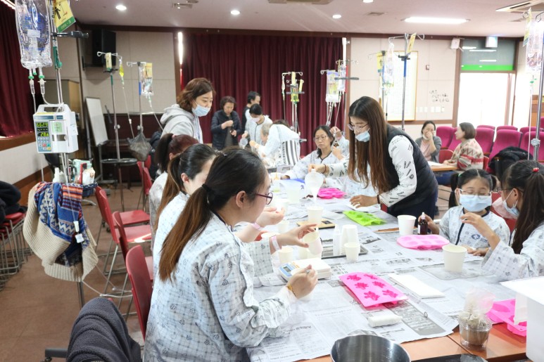 단원병원은 매월 환우분들이 직접 참여 할 수 있는 비누공예를 진행하고 있습니다.