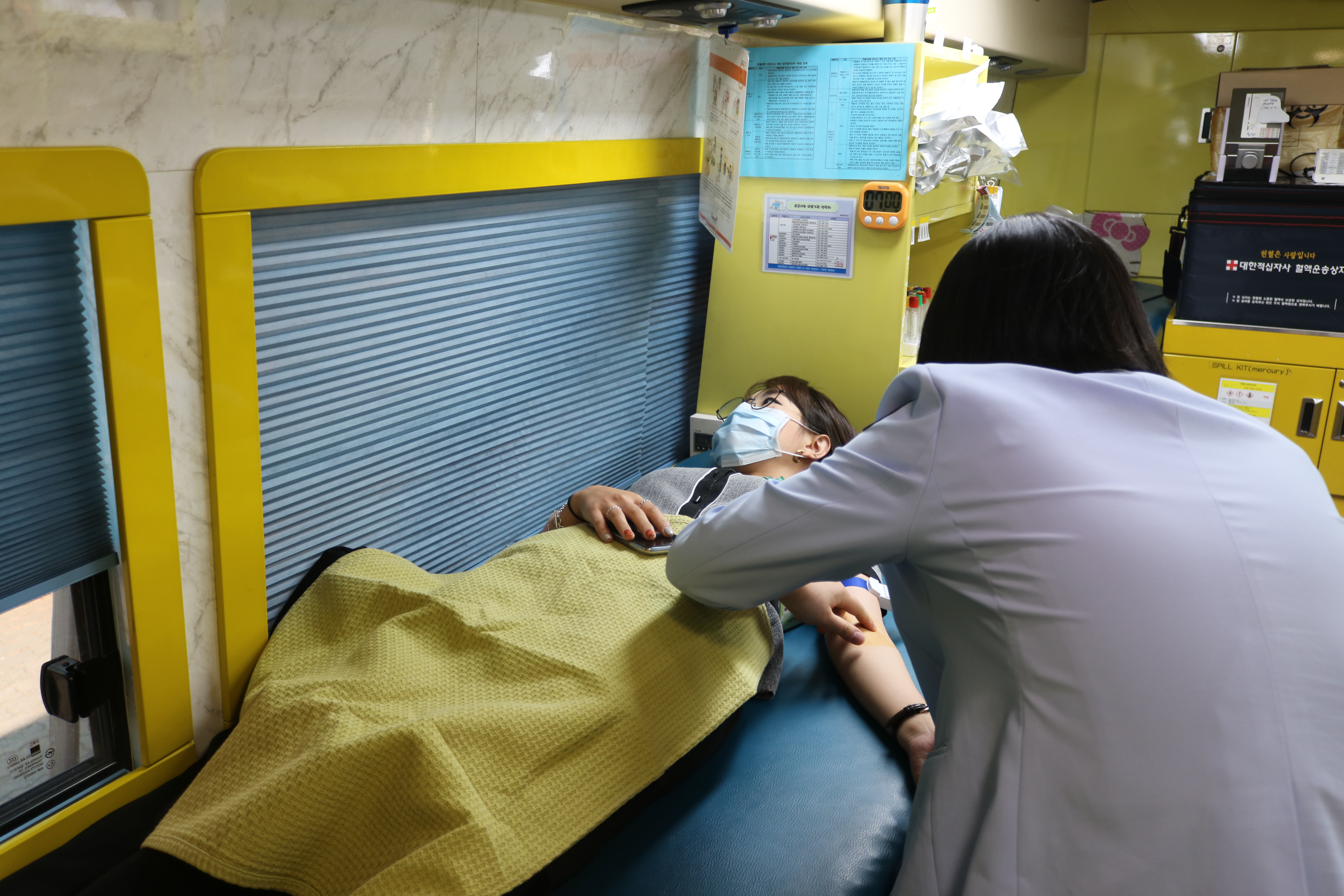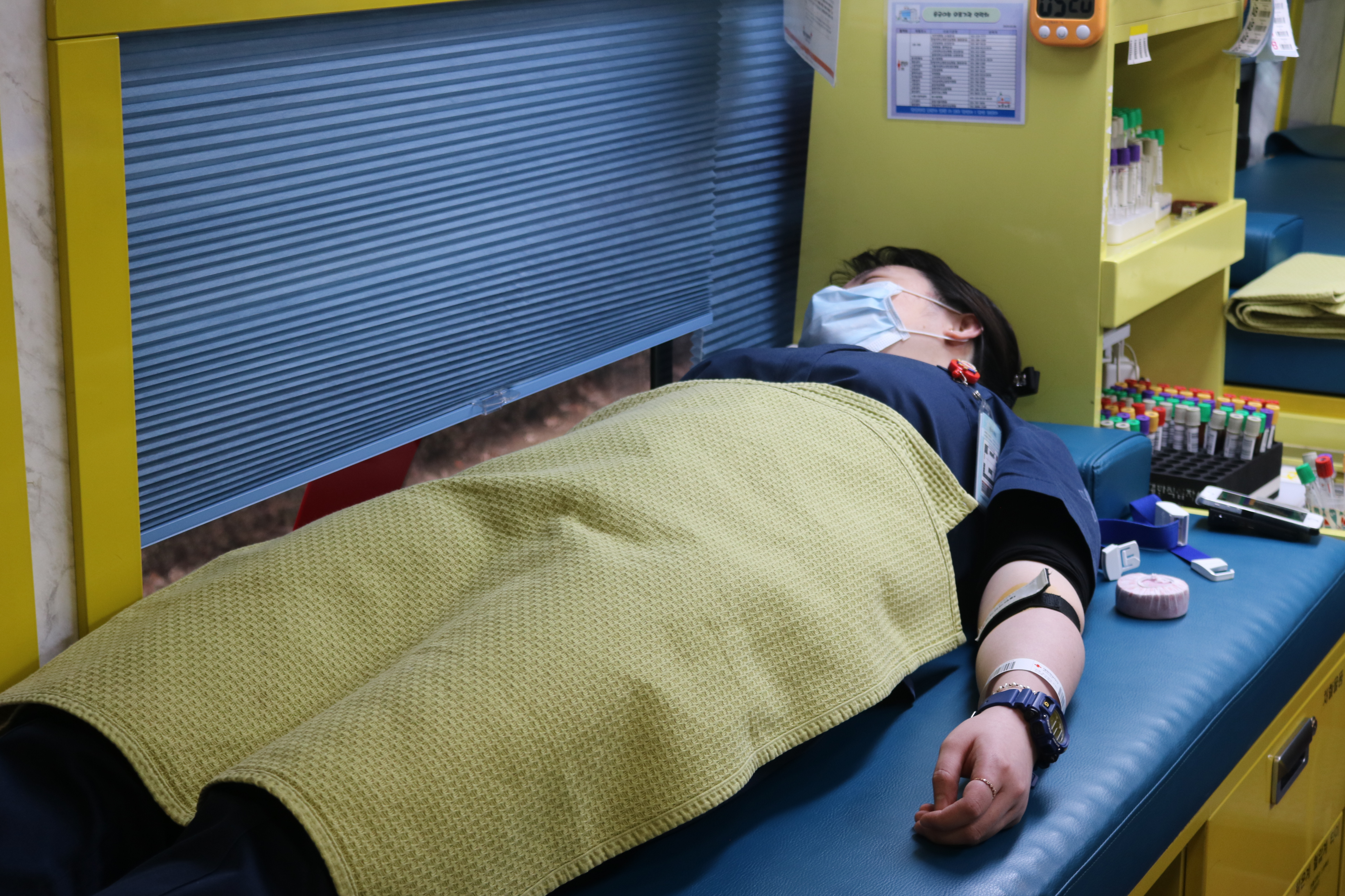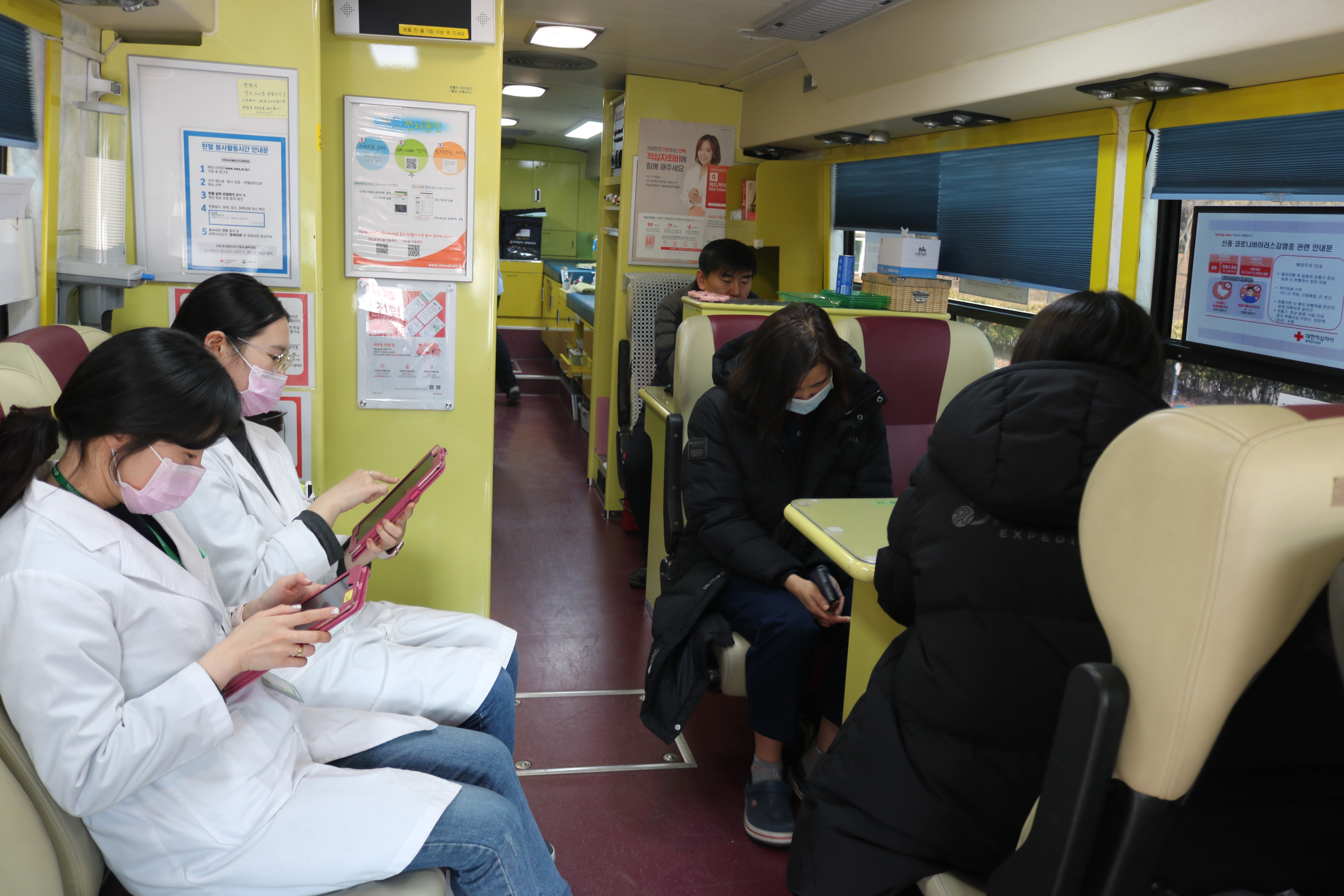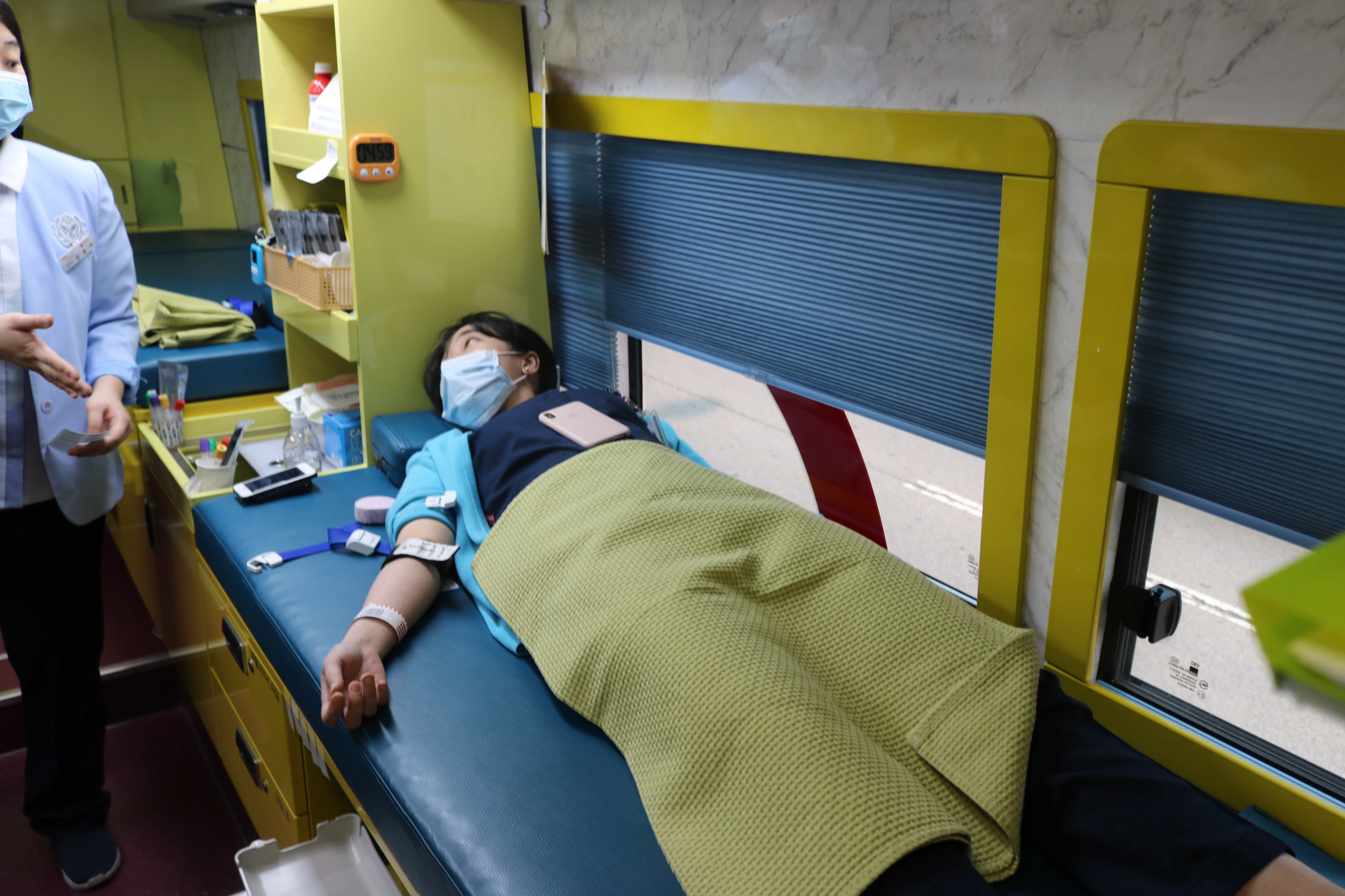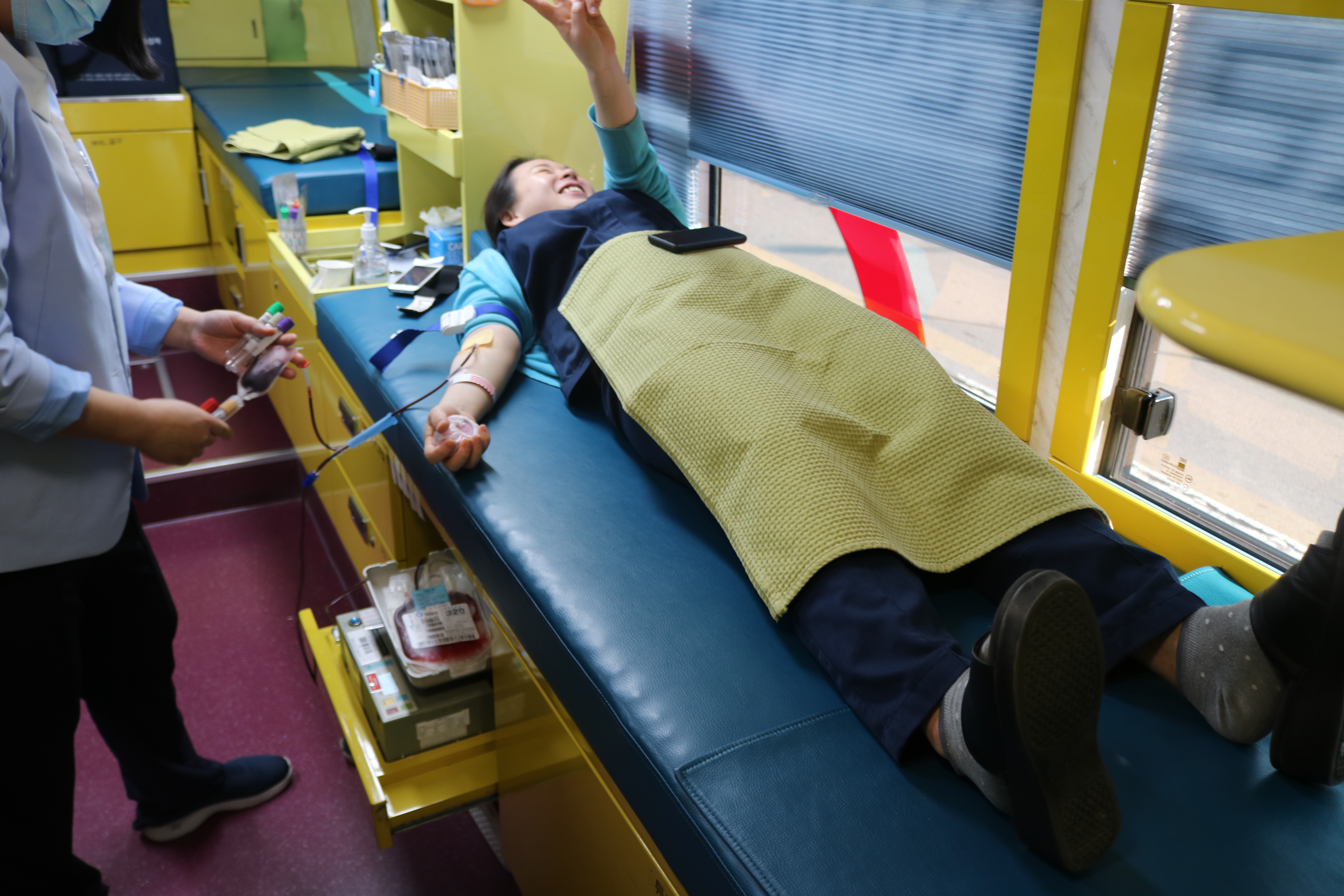 헌혈은 오전 10시 30분 부터 오후 16시까지 헌혈버스에서 희망자들을 통해
