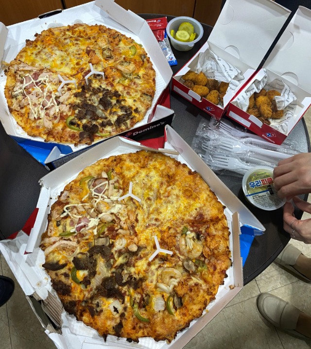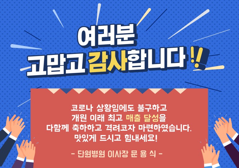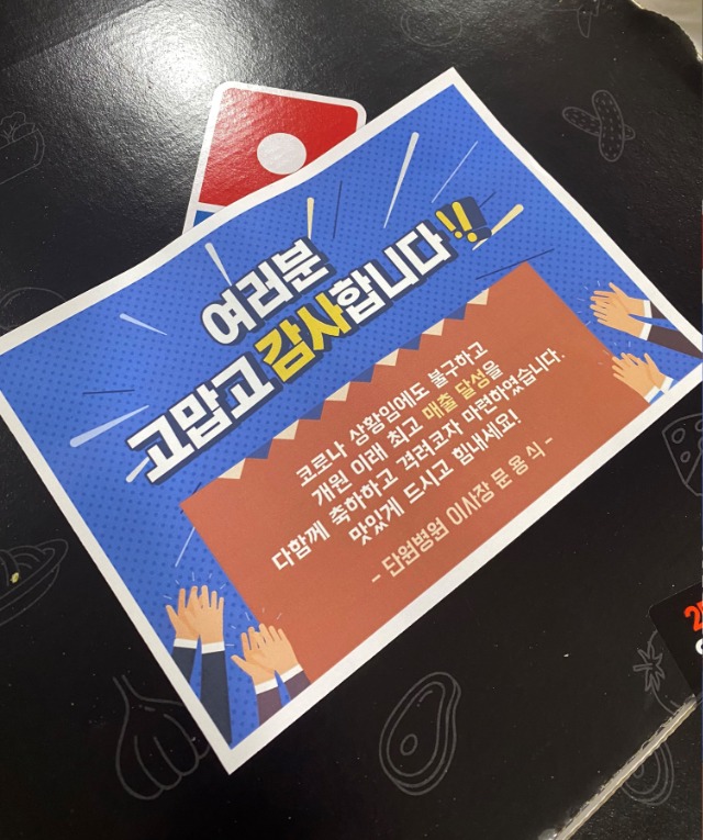 최고 매출 달성에 대한 소식을 전하며, 이를 기념해 전 직원에게 피자와 치킨을 마련했다.