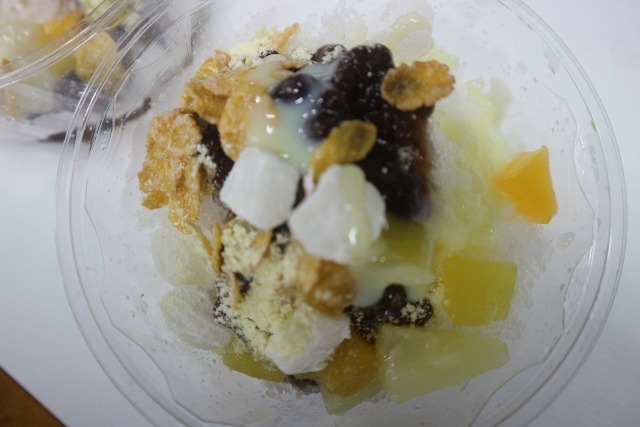 팥과 후르츠, 떡, 연유, 우유 등 토핑까지 듬뿍 담았습니다.
