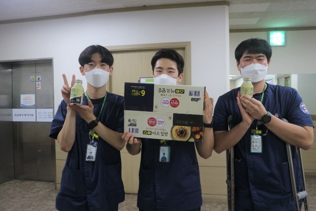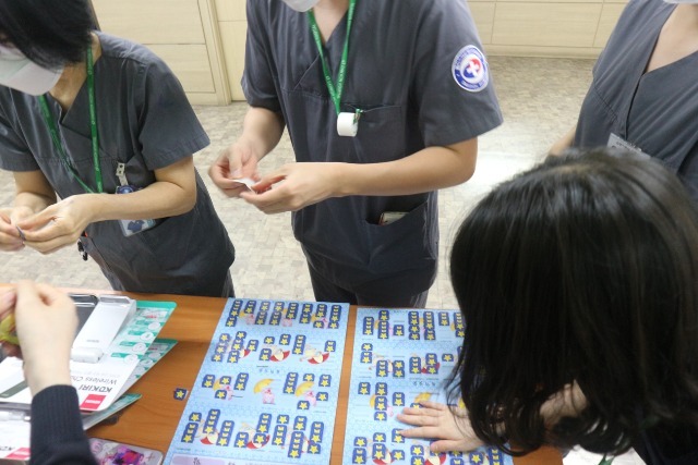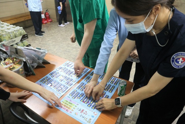 특식으로 점심식사를 든든히 한 직원들은 다같이 추억의 뽑기를 하면서 잠시나마 지친 일상에 즐거움을 느끼고