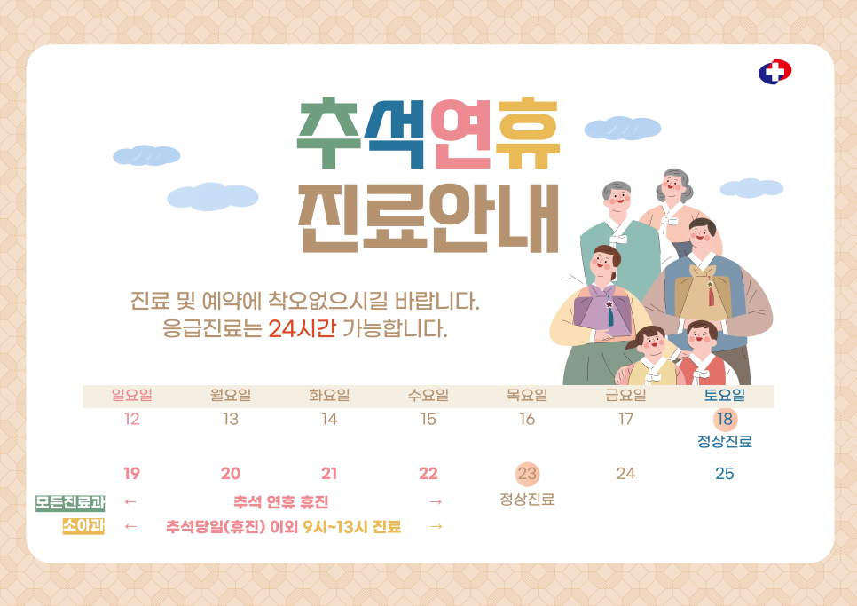 | 9월 19일, 20일, 22일 오전(09~13시)진료 | |