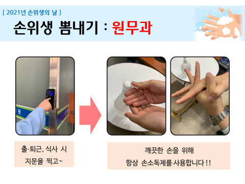 단원병원 '2021년 손위생의 날'을 맞이하여 시행한 '손위생 뽐내기'에