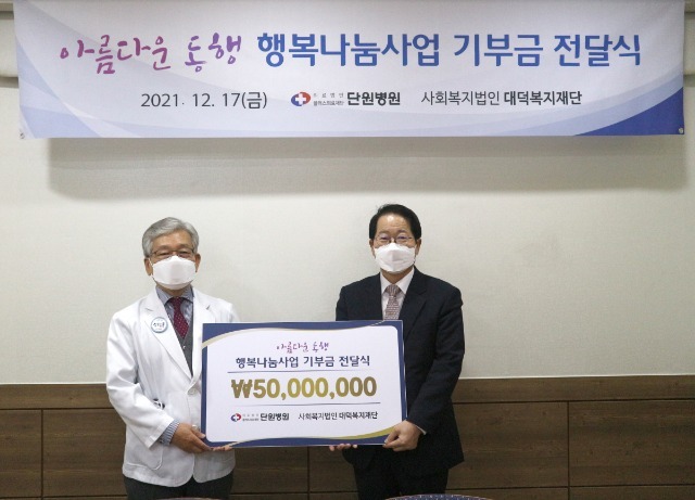 희망하는 마음으로 기부금을 전달하게 되었다. 코로나19로 어려운 시기이지만, 단원병원과 함께 긍정적인 가치를 나눌 수 있기를 바란다.”고 전했다.